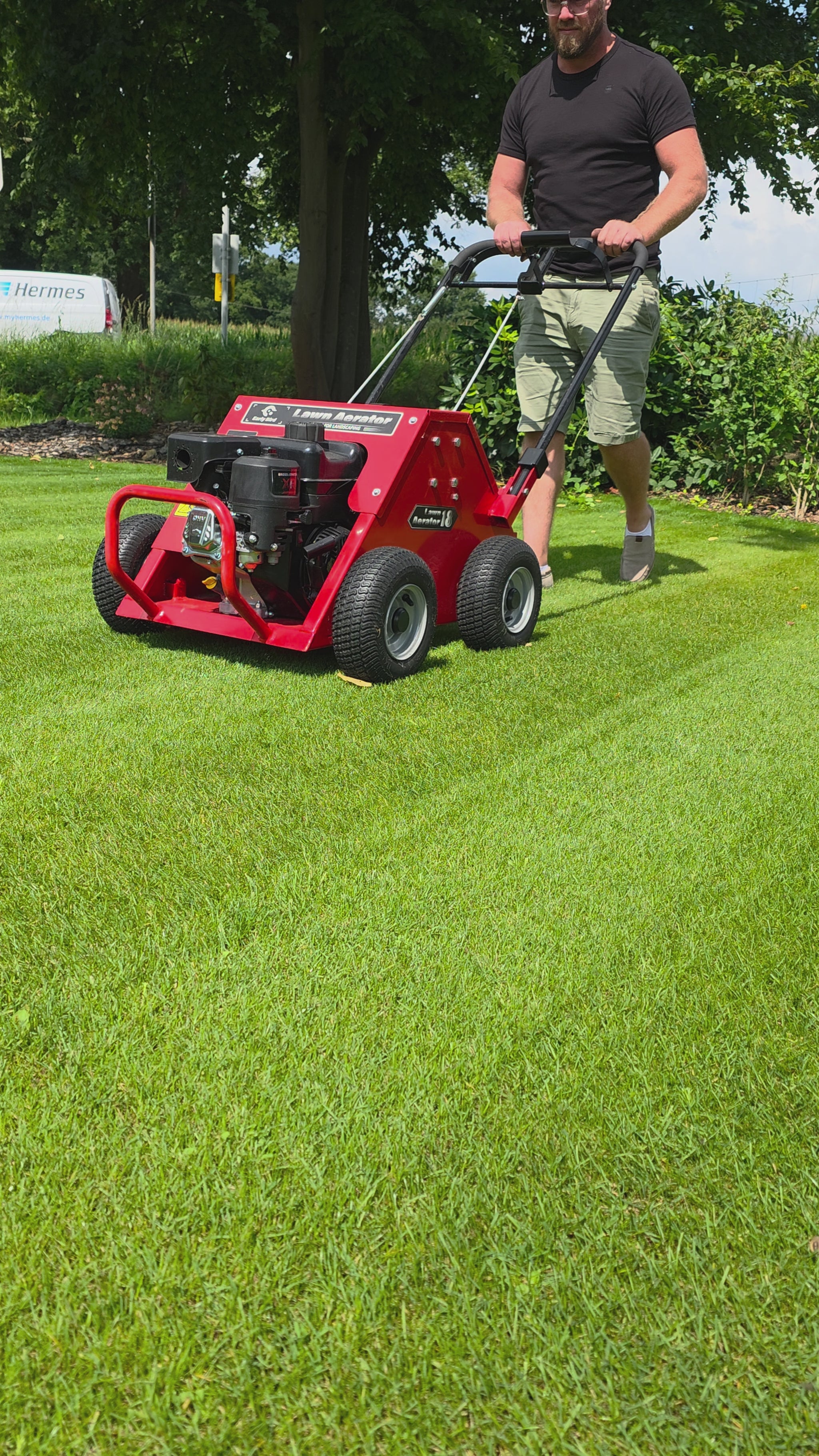 Der LA18 Aerifizierer wird von einem zuverlässigen und starken Briggs & Stratton XR950-Motor angetrieben. Der Vortrieb erfolgt automatisch durch das Einstechen der Werkzeuge in den Boden.